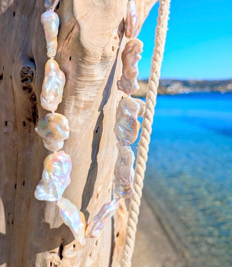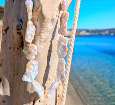 La Maison di Gioielli Diversi dal Solito allegri colorati dedicati al mare realizzati a mano con materiali naturali collana perle barocche collana corallo collana turchese, collana lapislazzuli, collana pietre dure collana ametista collana perle scaramazze Collana artigianale particolare made in Italy