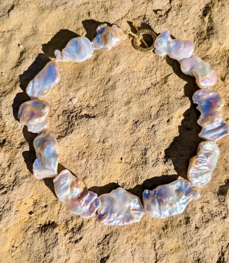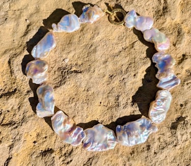 Their irregular forms and delicate reflections create a radiant work of art — a necklace that shines with understated sophistication, perfect for both elegant occasions and everyday wear.